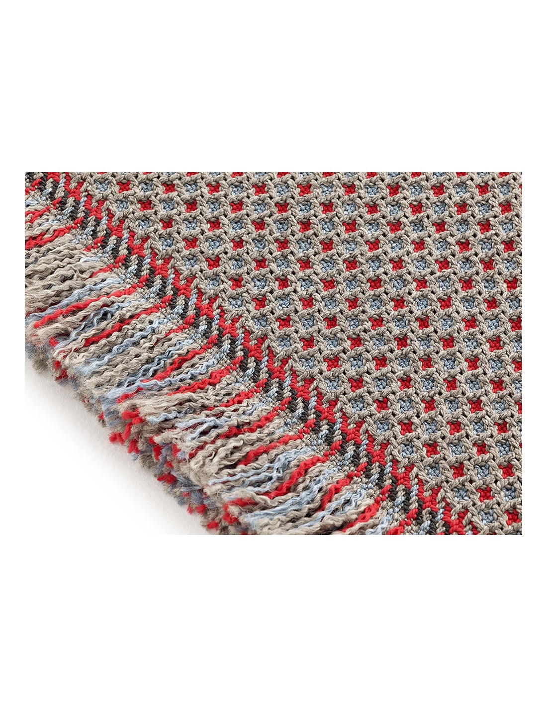 Elevate your outdoor space with the Garden Layers Outdoor Rug Gofre Blue, featuring a delicate grid-like pattern in soothing blue and subtle red tones. This hand-loomed masterpiece offers a refined blend of texture and color, creating a cozy yet elegant vibe. Its soft, plush surface invites barefoot comfort while adding visual depth to patios or decks. Perfect for enhancing any setting, this rug’s timeless design pairs effortlessly with both modern and rustic styles, making it a versatile and stylish addition to your outdoor rugs collection.