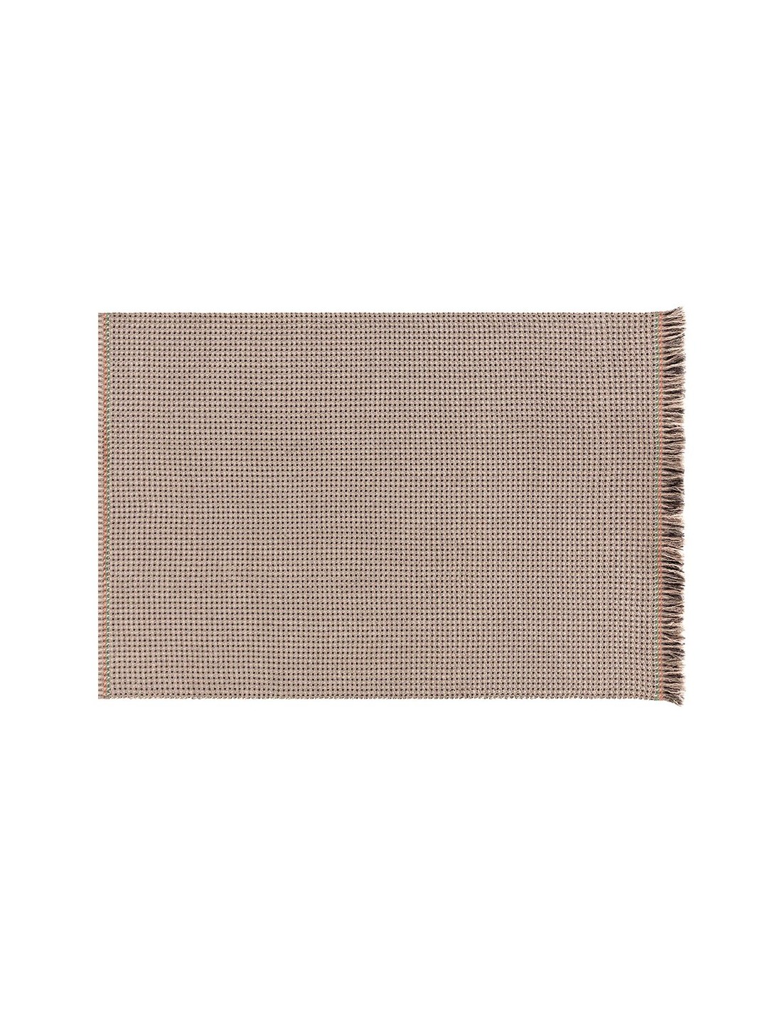 Transform your outdoor living area with the Garden Layers Outdoor Rug Gofre Terracotta 200x300, a stunning piece designed by Patricia Urquiola that perfectly blends style and functionality. This hand-loomed rug from India showcases a sophisticated terracotta base interwoven with subtle black and beige tones, creating a delicate waffle-like pattern that adds texture and depth without overwhelming your space. The fine craftsmanship is evident in the intricate weave, which not only enhances its visual appeal but also ensures durability for outdoor use.