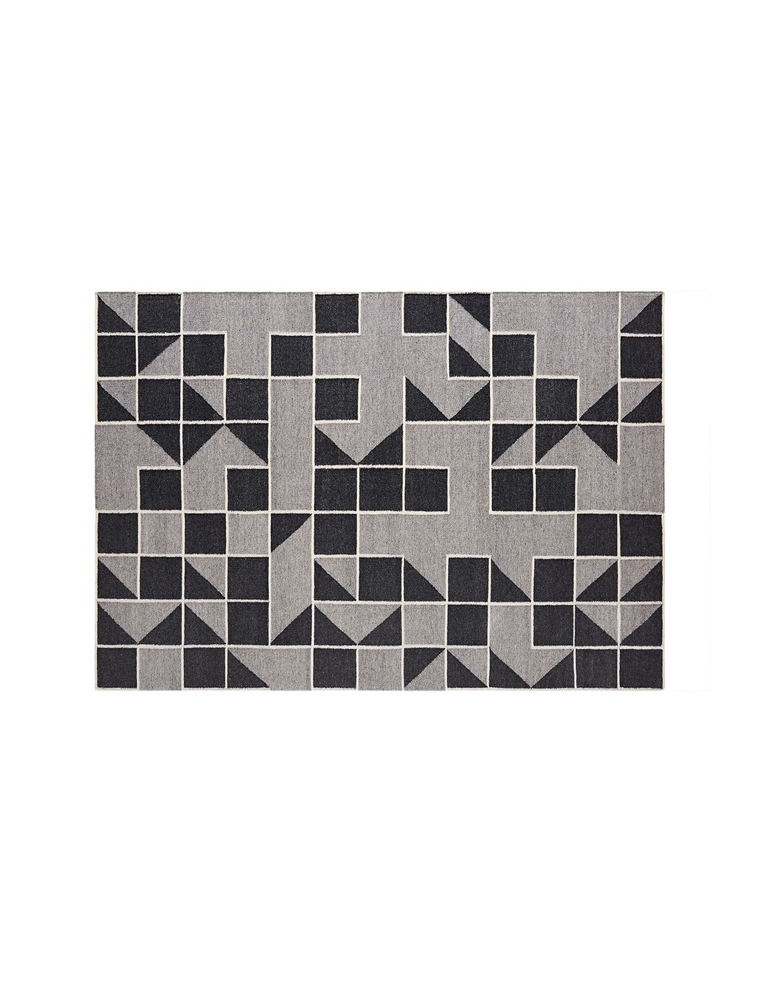 Bring a touch of modern elegance to your space with the Modica Rug Grey 151x203. Featuring a captivating geometric pattern of squares and triangles, this rug blends dark charcoal and soft grey tones for a sophisticated look. The kilim weave adds subtle texture and depth, creating a stylish yet cozy foundation for any room. Its sleek profile fits seamlessly under furniture, making it perfect for living rooms, bedrooms, or offices. Durable and versatile, this quality rug enhances contemporary interiors with timeless appeal and effortless charm.