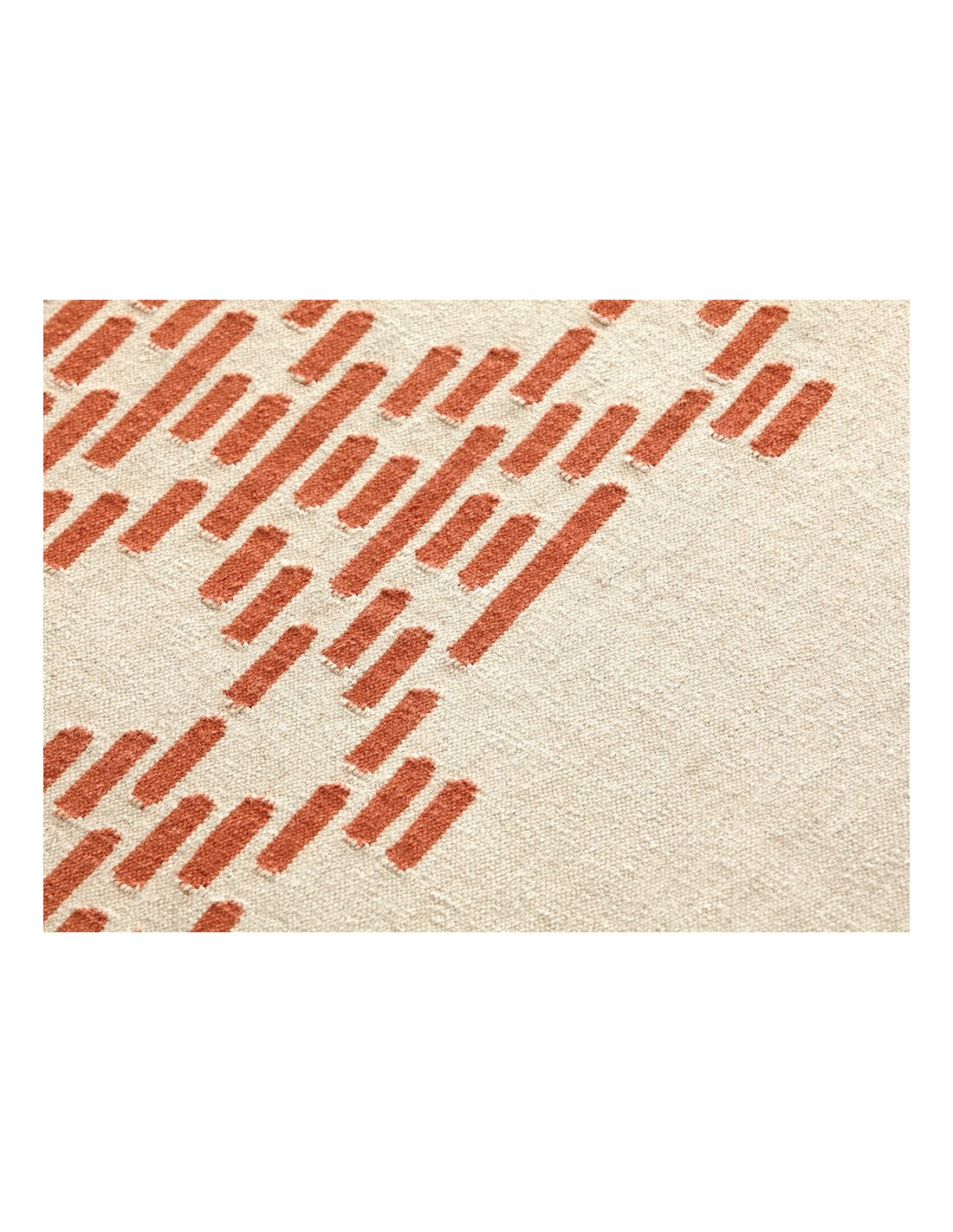 Transform your living space with the Thay Rug Taupe 170x240, a stunning example of quality rugs that effortlessly blend contemporary style with traditional craftsmanship. This exquisite rug, designed by María Mengual and crafted in India, showcases a unique kilim weaving technique that adds texture and depth to any room. The taupe base color offers a warm, neutral backdrop, while the intricate burnt orange geometric pattern creates a captivating visual contrast that draws the eye without overwhelming the space.