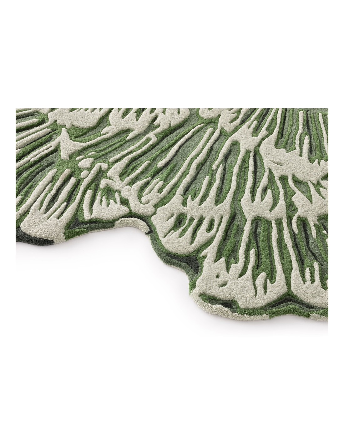 Il Botanica Tappeto Green Big 240x370 è un capolavoro di design contemporaneo che porta un tocco di natura e raffinatezza in ogni ambiente. Ispirato alle forme organiche delle foglie, questo tappeto moderno si distingue per la sua silhouette irregolare e il motivo botanico che ricorda un gruppo di foglie di loto stilizzate, perfetto per chi cerca un elemento decorativo unico e originale per il proprio salone o zona living.