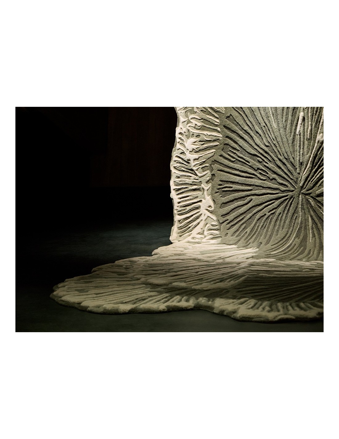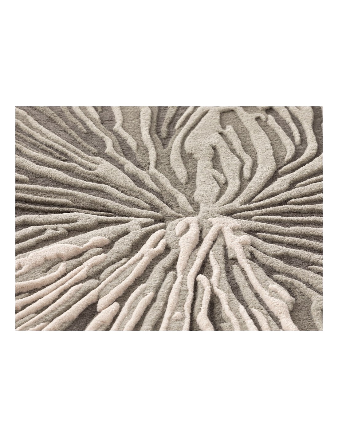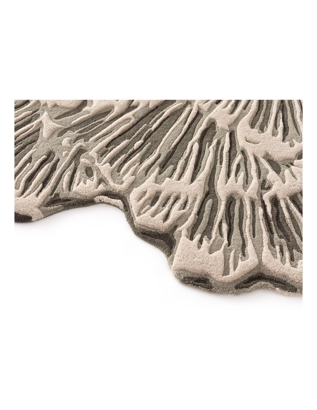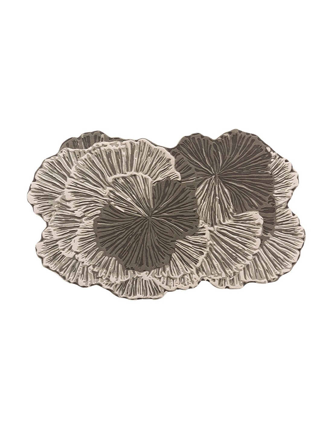 Il motivo floreale astratto, ispirato alla collezione Botanica rugs, si sviluppa in una palette di grigi e beige che si intrecciano armoniosamente, creando un effetto tridimensionale e dinamico. Il dettaglio delle venature, finemente cesellate, ricorda le delicate trame di un fungo o di una foglia, conferendo al tappeto un aspetto naturale e organico. Lo spessore di 0,25 cm assicura una superficie morbida ma stabile, ideale per un uso quotidiano senza rinunciare all’eleganza.
