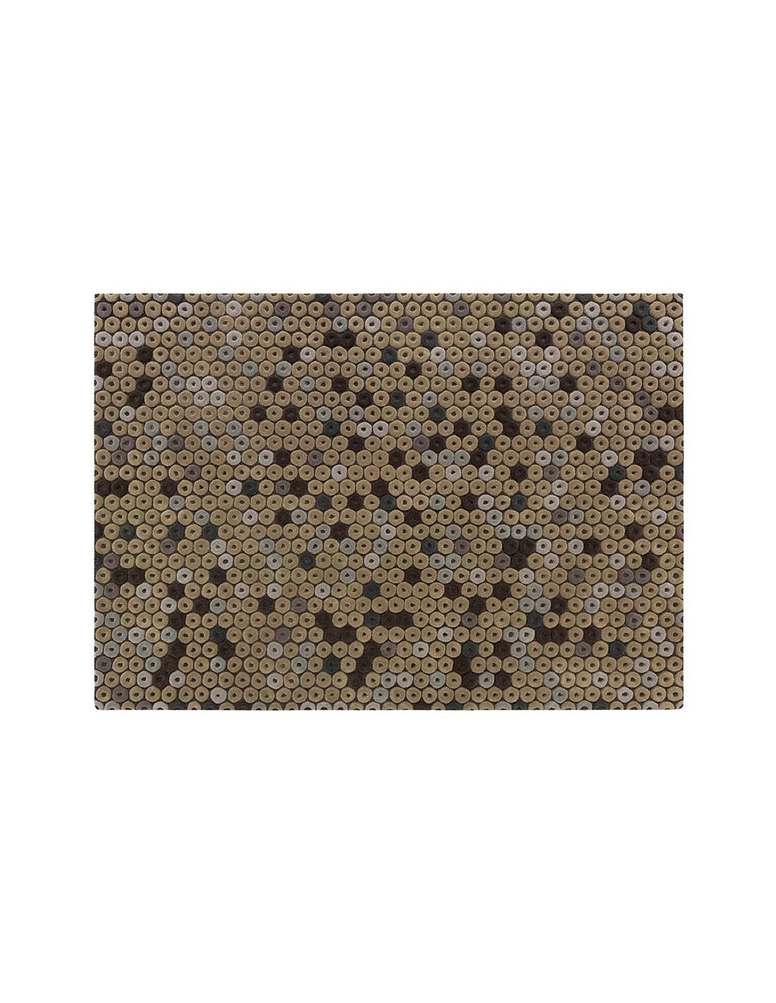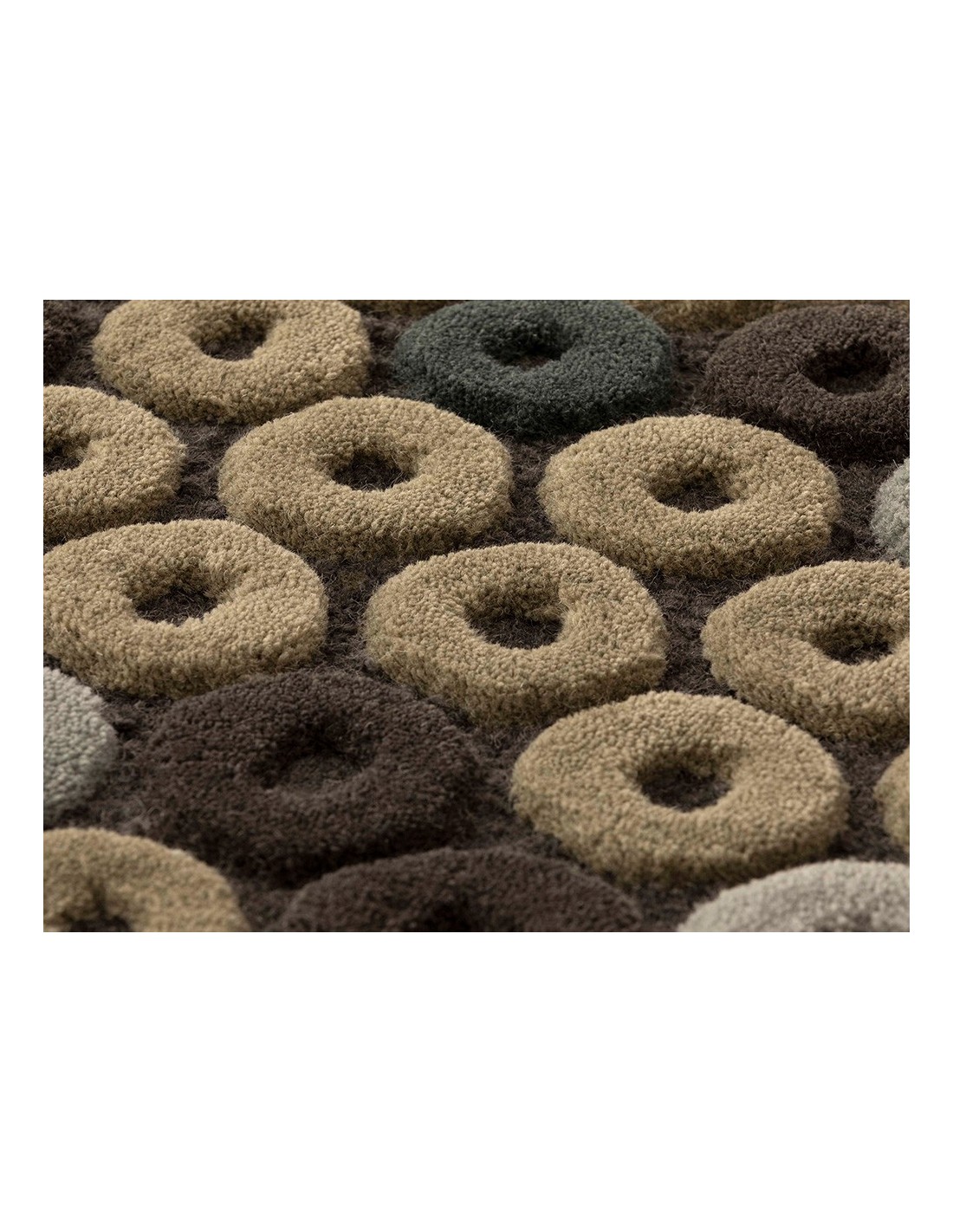 Il Chimos Tappeto Green 170x240 è una scelta raffinata per chi desidera arricchire il proprio ambiente con un tocco di stile contemporaneo e naturale. Realizzato con la tecnica hand tufted in India, questo tappeto si distingue per la sua trama unica e il design ispirato alla natura, che richiama la forma di piccoli tronchi d’albero tagliati a sezione, disposti in modo armonioso e regolare. I colori predominanti, un mix di verdi, beige e marroni, creano un effetto visivo caldo e accogliente, perfetto per un tappeto salone che vuole essere protagonista senza risultare invadente.