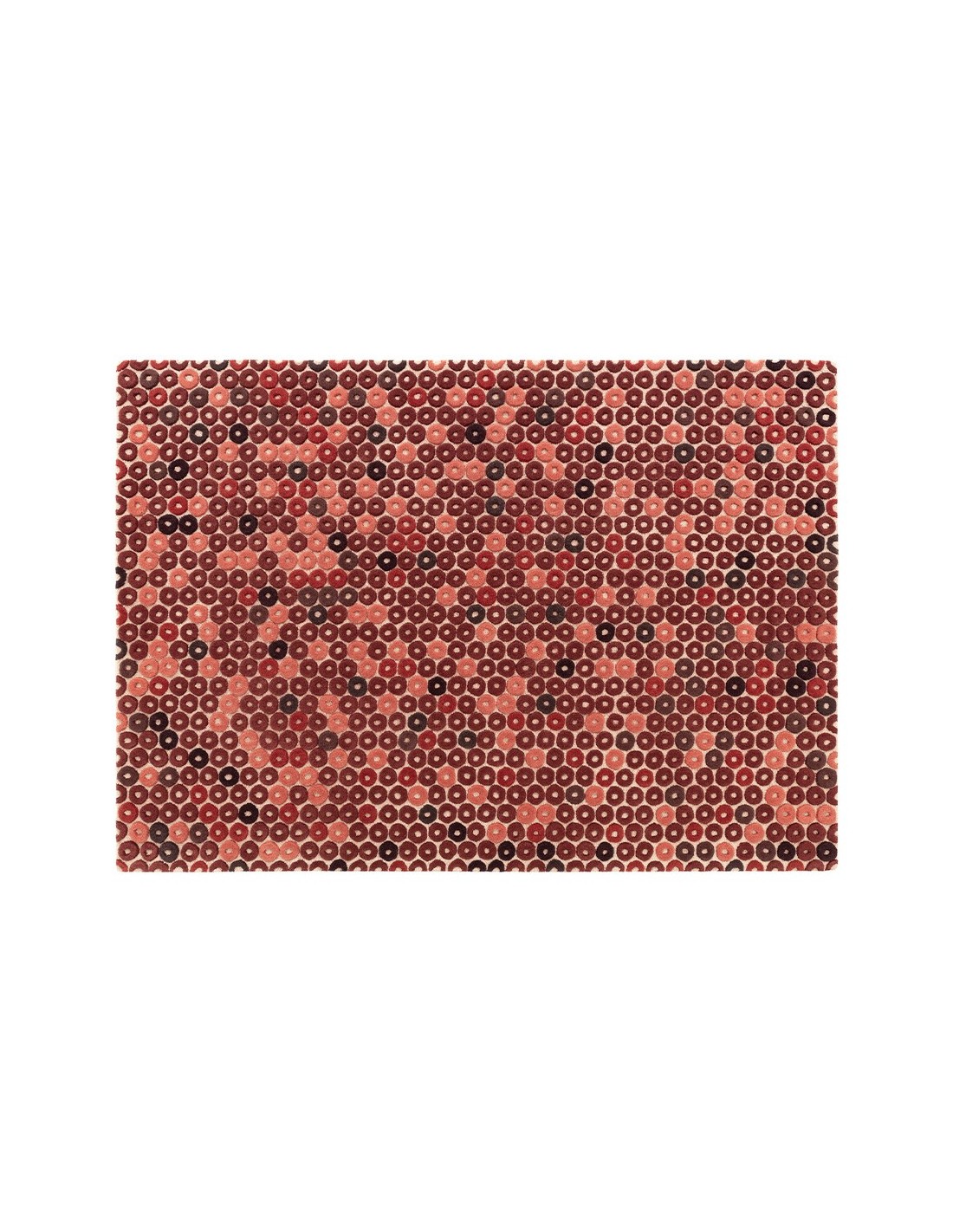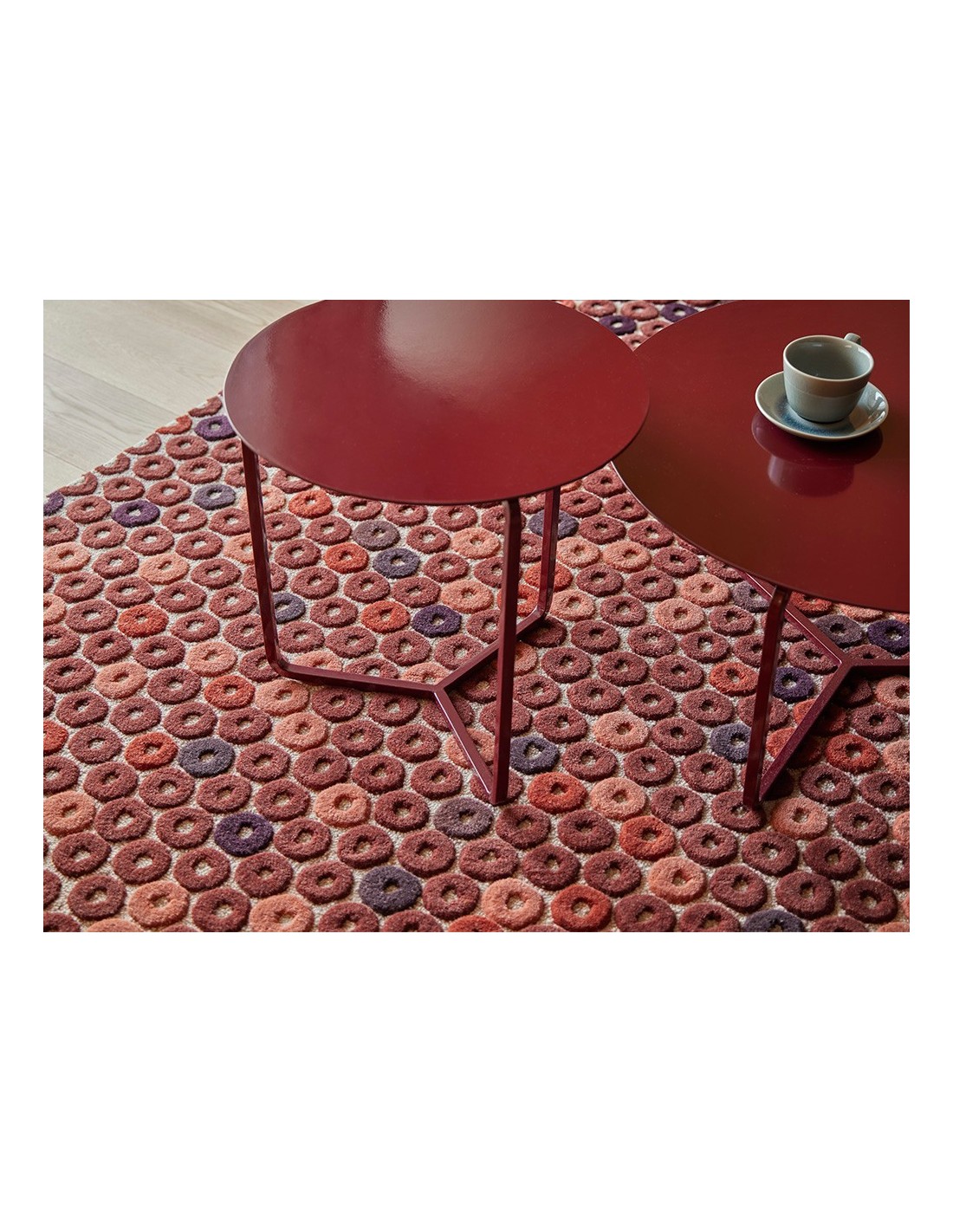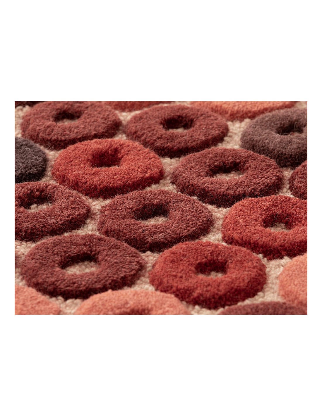 Il Chimos Tappeto Red 170x240 è un capolavoro di design contemporaneo che porta un tocco di calore e raffinatezza in ogni ambiente. Realizzato con la tecnica hand tufted in India, questo tappeto moderno si distingue per la sua trama ricca e il motivo a piccoli cerchi concentrici che creano un effetto visivo dinamico e avvolgente. Le tonalità calde del rosso, del bordeaux e del marrone si intrecciano armoniosamente, donando profondità e carattere al tappeto, perfetto per un salone elegante e accogliente.