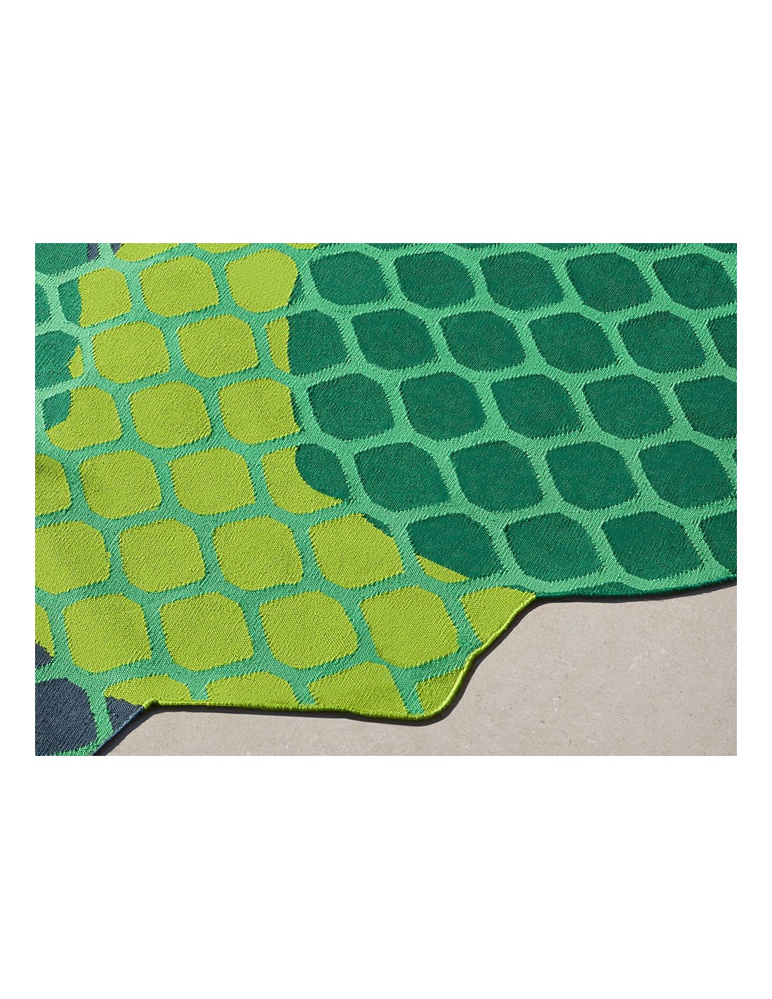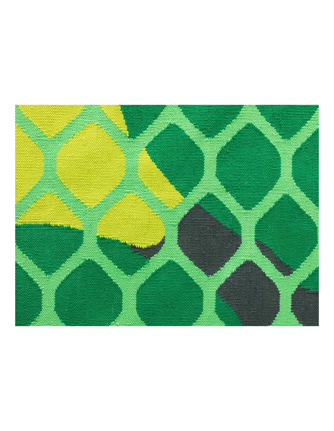 Il Citrus Outdoor Tappeto Lime 232x300 è la scelta perfetta per chi desidera unire stile moderno e funzionalità nei propri ambienti all'aperto. Questo tappeto per esterno, realizzato con la raffinata tecnica Kilim, si distingue per il suo design unico e accattivante, caratterizzato da una composizione di forme tondeggianti sovrapposte in tonalità di verde lime, verde scuro e grigio antracite. La trama a rete che si ripete su tutta la superficie aggiunge un tocco di dinamismo e profondità, rendendo il tappeto un vero protagonista visivo.