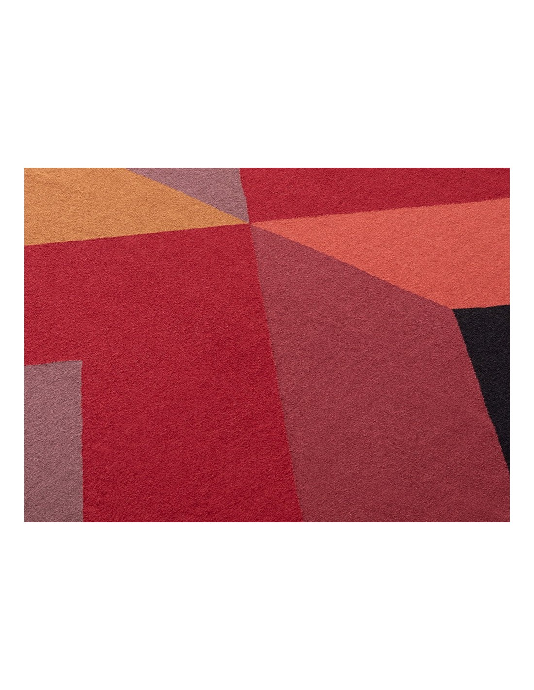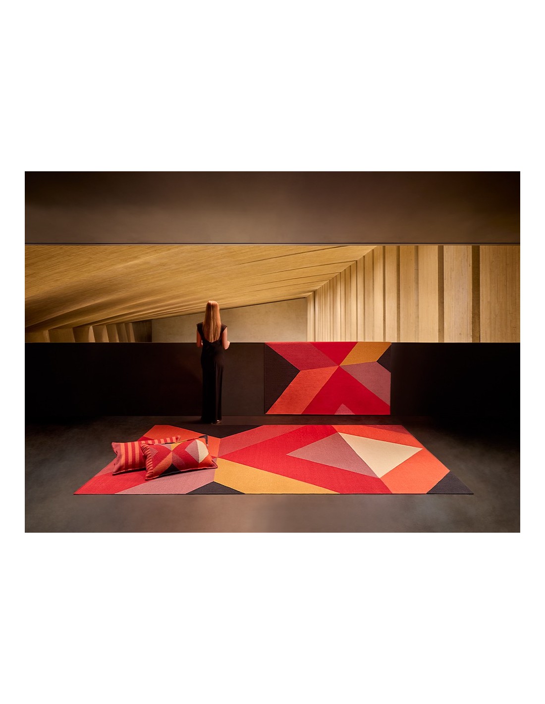La palette cromatica è un’esplosione di tonalità calde e decise: dal rosso intenso al corallo, passando per sfumature di bordeaux, arancio bruciato e tocchi di beige e nero. Questi colori si intrecciano in un motivo geometrico audace e dinamico, capace di catturare lo sguardo e dare carattere a qualsiasi tappeto salone. Il disegno, firmato dalla designer Sandra Figuerola, è un perfetto equilibrio tra arte e funzionalità, ideale per chi ama uno stile moderno ma con un tocco di personalità.